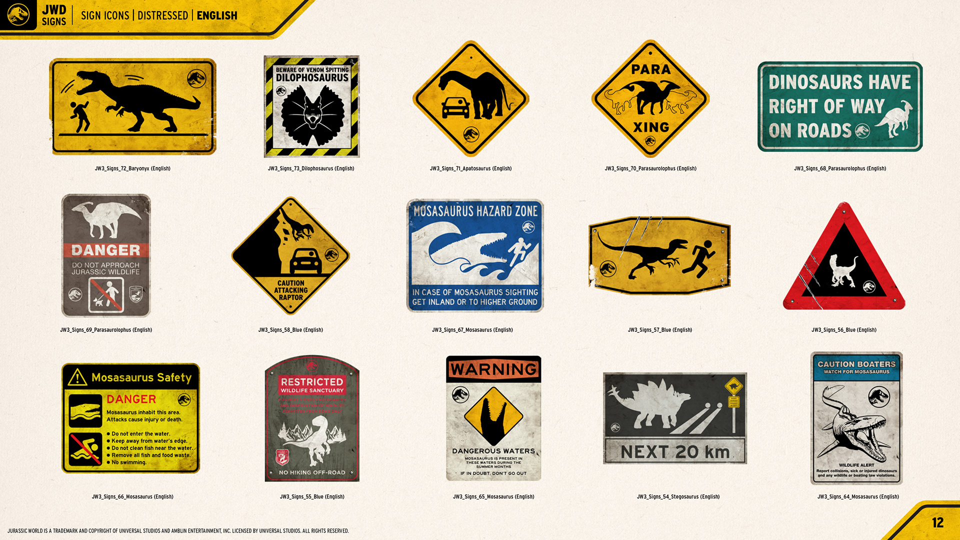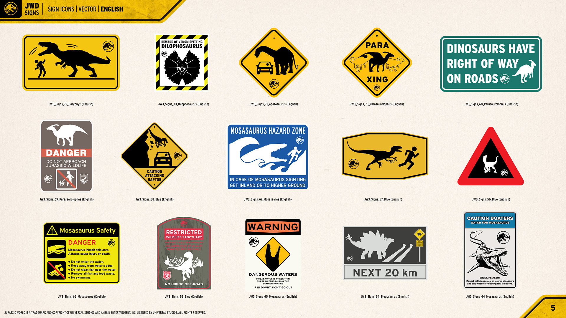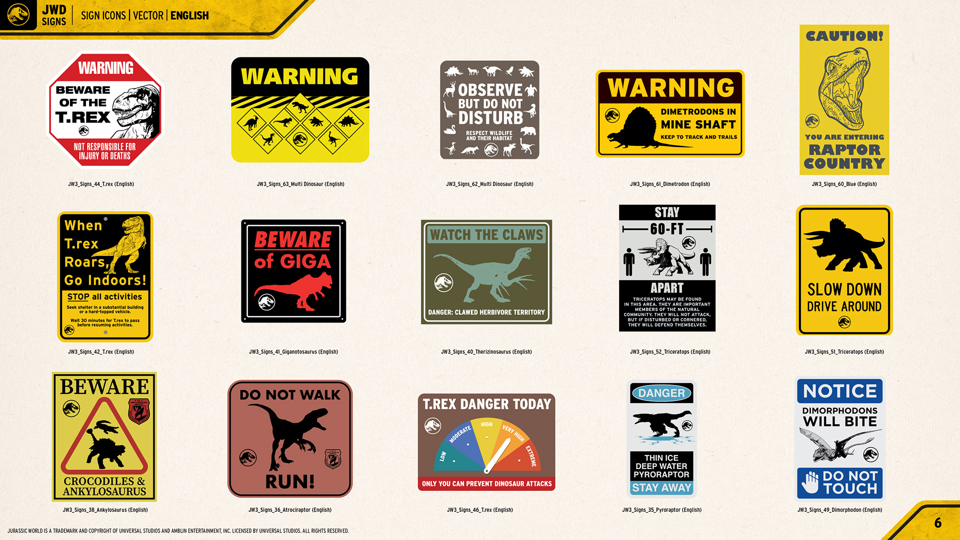 Jurassic World "Signs" Consumer Products Style Guide