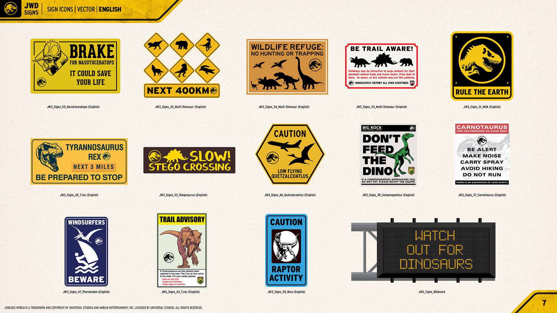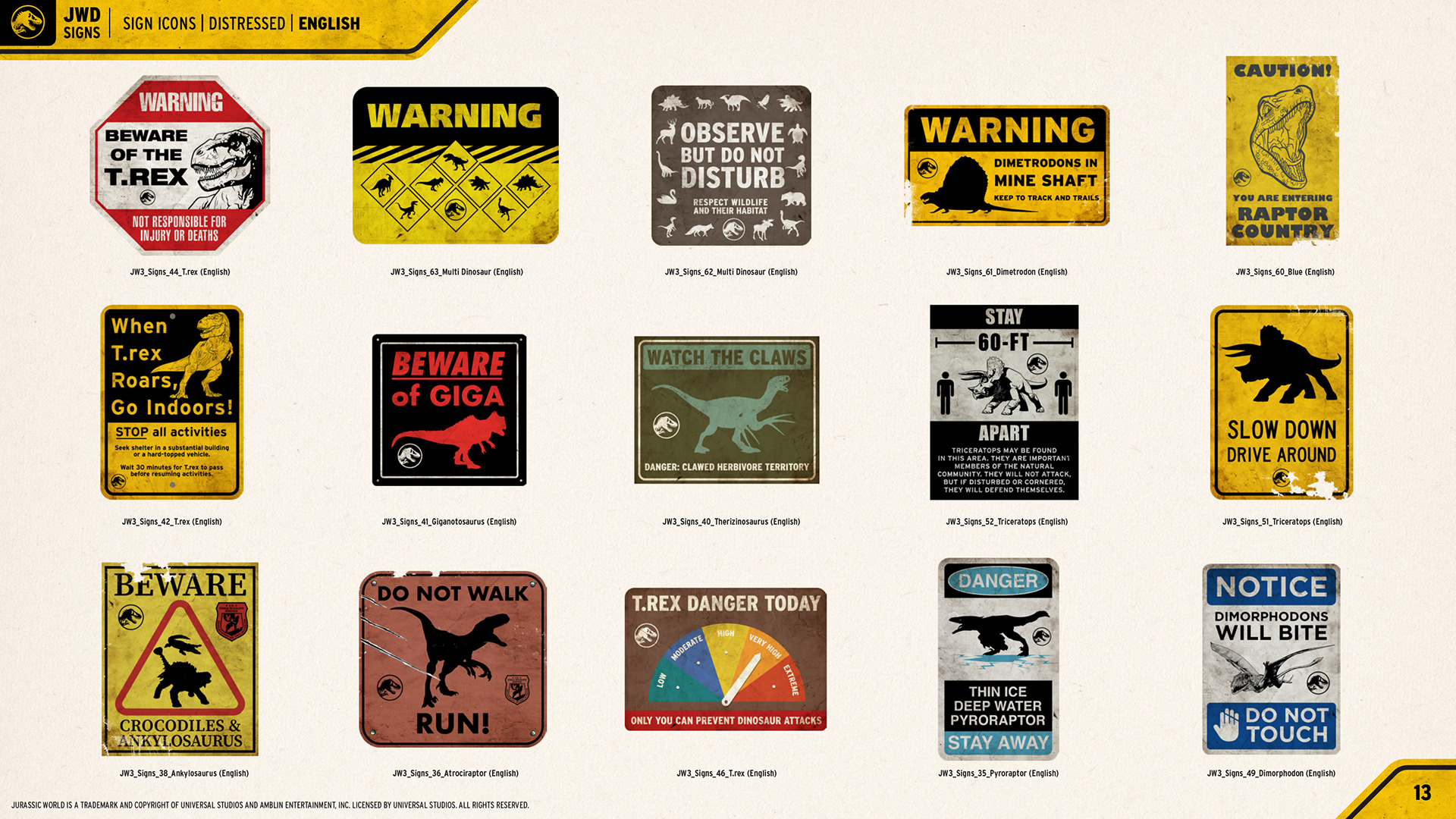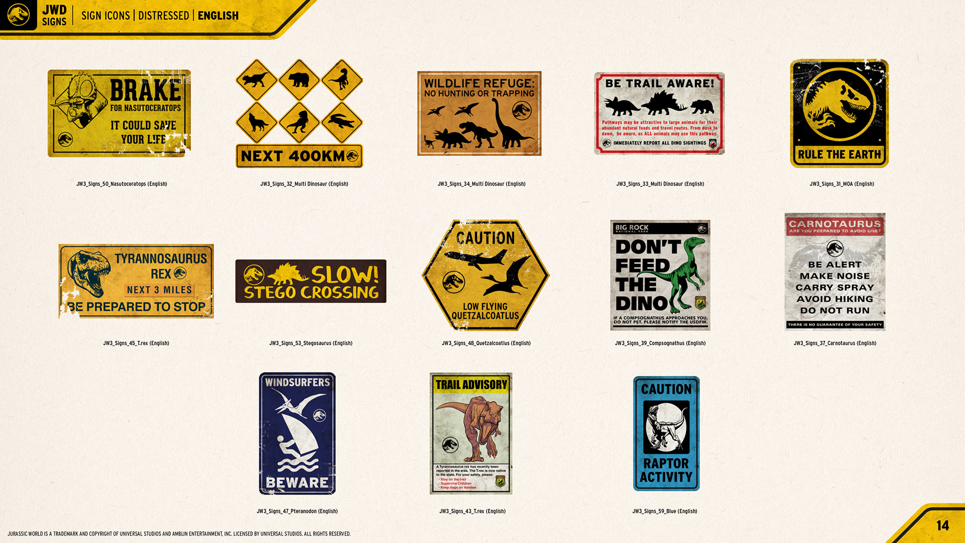 Jurassic World "Signs" Consumer Products Style Guide